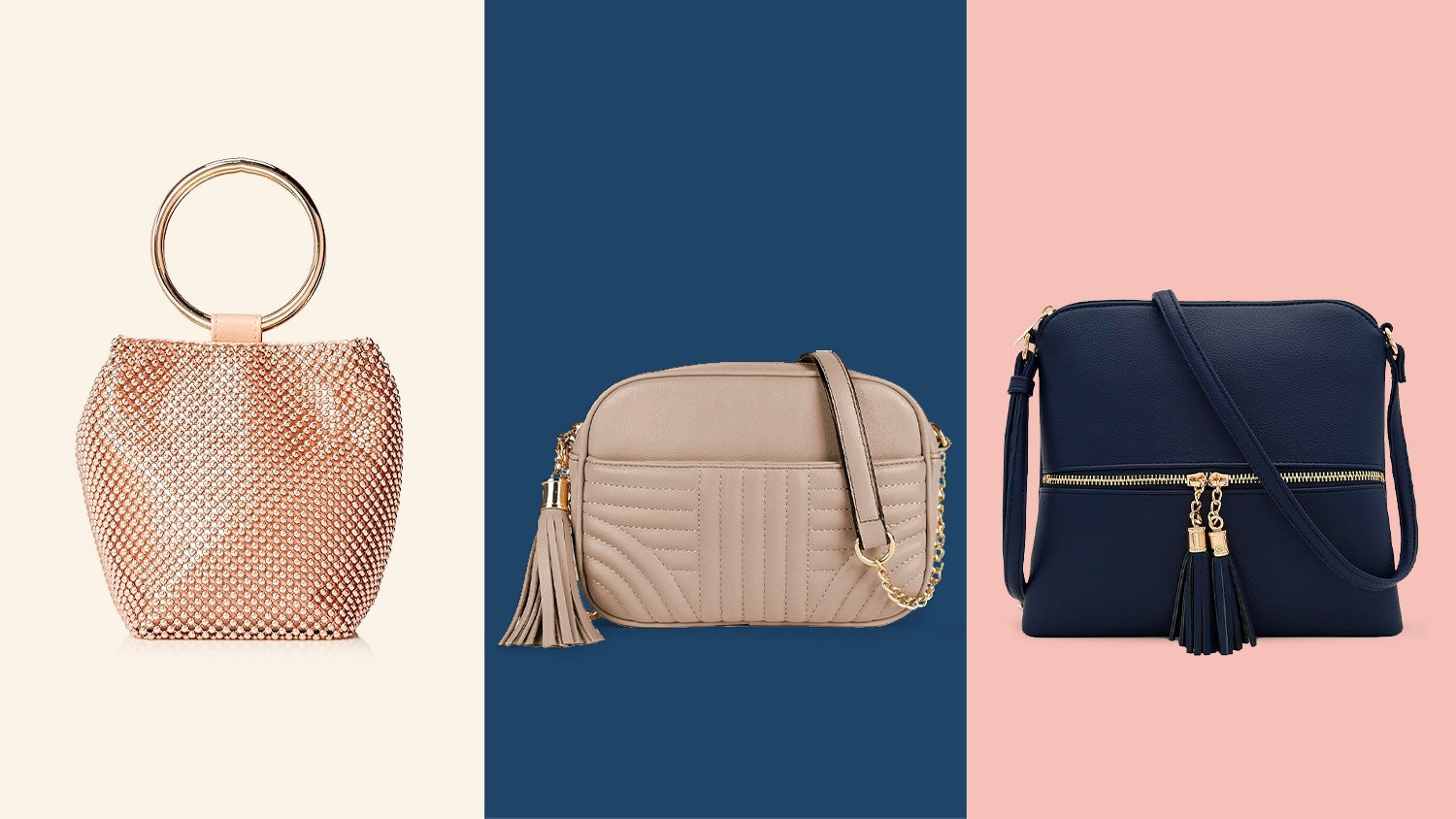 This stylish crossbody bag has an eye-catching set of tassels on the front and looks like it's made of high-quality leather (it's actually faux leather). It contains an adjustable shoulder strap, a front pocket and two interior pockets. This bag features gold-toned hardware and comes in 18 attractive colors.
