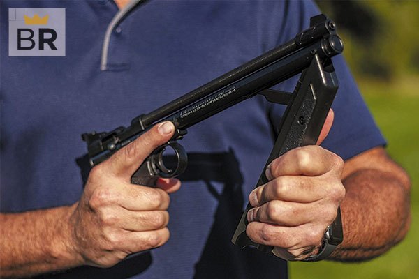 Manual pump: A manual pump air pistol can be very powerful. It requires the user to move a lever up and down to pressurize air inside the chamber of the pistol. It is limited by the amount of pumping you do but generally will allow for several shots off of one recharge.