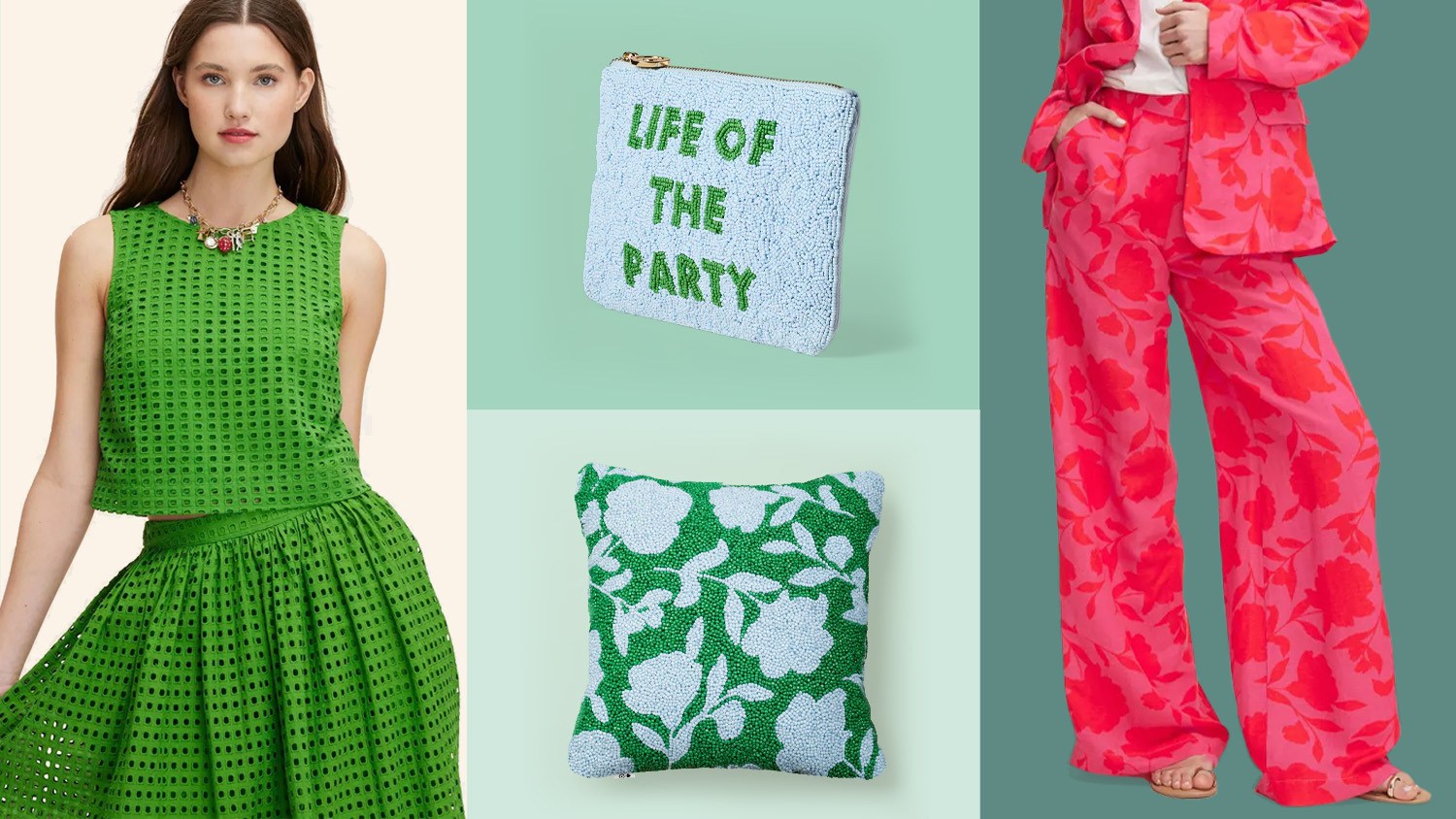In this article: Life of the Party Beaded Clutch, 12"x12" Beaded Classic Rose Square Throw Pillow Green/Blue and Women's Classic Rose High-Rise Linen Trousers