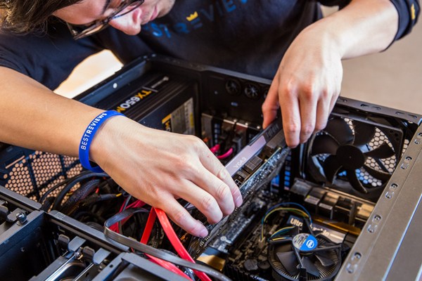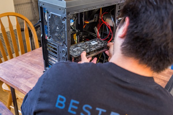 A. No, so long as you follow a few safety precautions. Installing a video card usually just means opening up your PC case, removing the current video card from its slot, and sliding the new one in (usually there’s also a single screw that holds it in place). Before you do, however, it’s important to unplug your computer – touching your computer’s internals while it’s on can result in serious injury. Once you’ve purchased a graphics card, search the web for installation videos so you can see how other gamers went about setting up theirs.